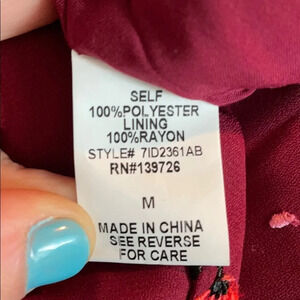 Honey Belle Here to Grow Flower Garden Short Sleeve Dress Floral Print Red Medium. Short sleeve mini dress in the color wine. Small flower details. Size medium about a size 2-4. Outside material = 100% polyester. Lining material = 100% rayon. Armpit to armpit = 15”. Length top of shoulder to hem= 32.5”. Brand new with tags.