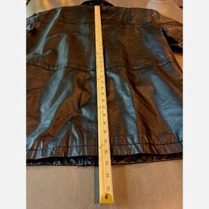 Keywords: black faux leather, menswear, outerwear, classic style, zip and snap front, snap collar, utility pockets, motorcycle jacket, biker style, streetwear, fall fashion, winter style