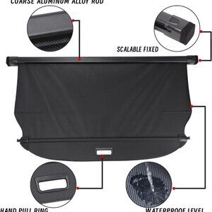 【Material】This rear cargo cover is made from waterproof and durable carbon fiber & aluminum slloy, structural reinforcement form.this rear trunk cover is also tear-resistant, lightweight, water-repelling, easy to clean, adjustable and durable.