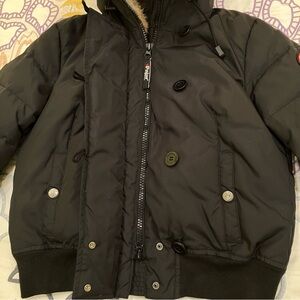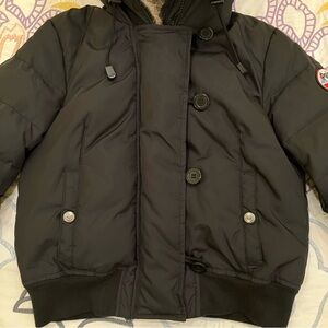 Pajar Down Bomber Jacket Fur Hood Cropped Black Luxury Canada RARE Women's Small