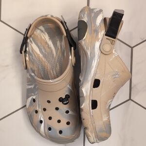 CROCS Classic All Terrain Marble clogs. In good condition with very little signs of wear. Men's size 7 or Women's size 9. These do run a little big, I would say closer to a women's 9 1/2.