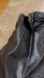 Chic black leather jacket with silver accents. Features asymmetrical zipper and zippered pockets. Ideal for a bold look.