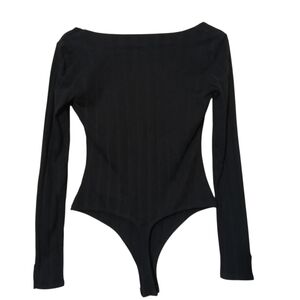 Free People Black Ribbed Bodysuit Square Neckline Party Cocktails Concerts
