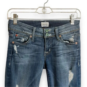 Y2K Hudson Jeans Ginny Crop Straight Leg With Cuff Distressed Size 24 USA Made.