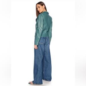 susan monaco teal green faux leather classic moto jacket coat size small NEW