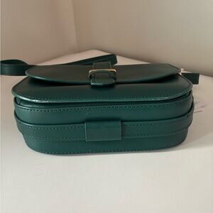 Elevate your everyday style with this stunning & Other Stories Paris Atelier saddle bag crafted from premium chrome-free tanned leather. This gorgeous structured crossbody is designed with refined minimalism, a rich emerald green finish, and luxe gold-tone hardware.