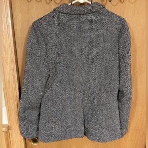 Grey and black textured blazer. Smooth black interior, perfect for office or personal.