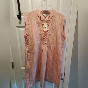 Simply Noelle NWT sz xxl. Pink white stripes. Lace up neck. Cap sleeves