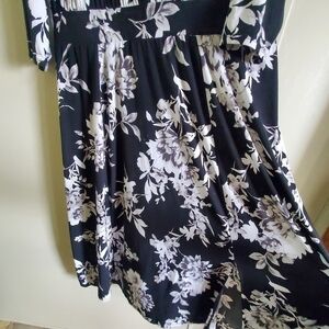 Lane Bryant sz 22/24. Boho black floral. Open back, side slit. Mock neck
