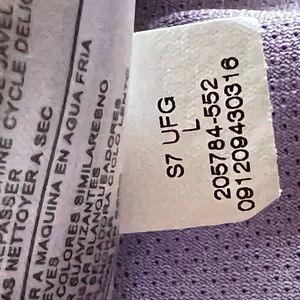 A Large that fits like a Medium; these run small. Perfect condition. Very pretty color! 💜