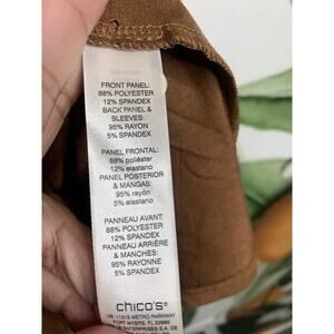 Chicos Size 3 US XL Brown Cognac Sueded Eyelet Cut out 4/3 Sleeve Tunic Top New