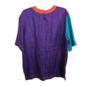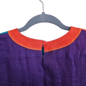 100% Linen Lagenlook Colorblock Vintage Blouse Top Colorful Artisy Oversized