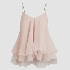 Cider Ruffle Hem Knotted Layered Mesh Cami Top