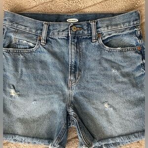 Cutoffs Shorts Long Denim Old Navy High Waist Distressed Raw Hem 3” Length SZ: 6