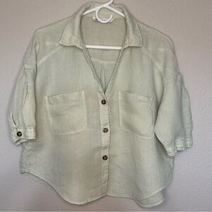 Zara 100% Linen Women's Light Green Button-Up Cropped Top size L