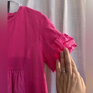 Chic fuchsia dress by English Factory. Cozy and fashionable. Poplin and knit mixture.