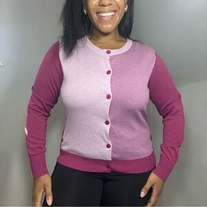 ORVIS Cardigan Knit Button Sweater Top Purple Career Casual Business Colorblock