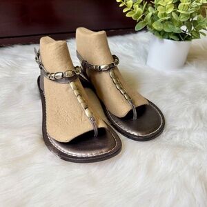 Bernardo Tristan T Strap Metallic Bronze Beaded Thong Block Heel Sandals Size 8