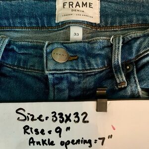 Frame Denim Men's Size 33x32 L'Homme Slim Jeans in Channel Place Wash Zip Fly