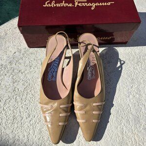 Salvatore Ferragamo Rosier Beige Leather Slingback Heels - Size 7.5 B
