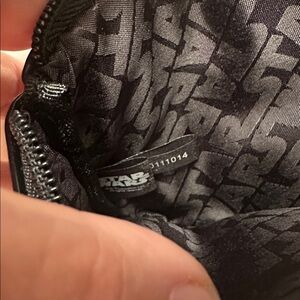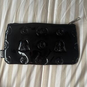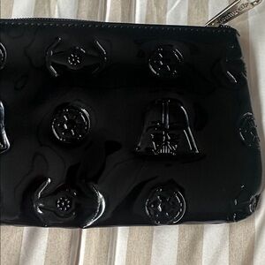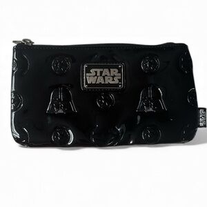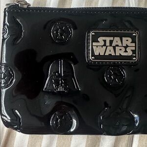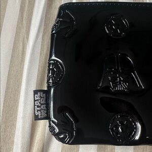 Sleek black wallet with Star Wars design. Features Darth Vader and logo details.