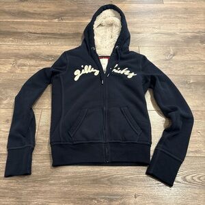 Stay cozy and stylish with the Gilly Hicks navy blue women's zip up hoodie. Lined with faux fur. Like brand new. Smoke free home.