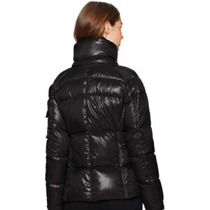 The S13 Women's Kylie Down Puffer Jacket in black, size S, is a fashionable and functional outerwear option for women. Made with a nylon outer shell and featuring a faux fur hood.