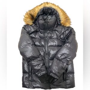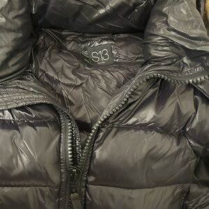 S13 Puffer Jacket with Faux Fur Hood Black Size Small