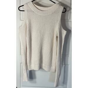 Loft Cold Shoulder Chunky Knit Front Tight Knit Back Cream/Beige M