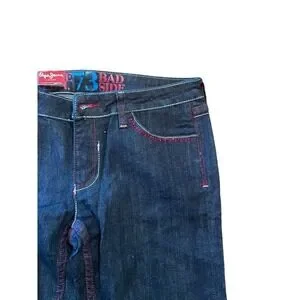 Pepe Straight Leg Jeans Women's 30 Black Denim Mid-Rise 5-Pockets Dark Wash Cotton.
