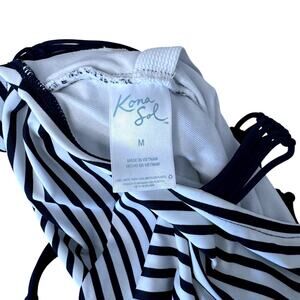 Navy and white striped. This suit is brand new without tags, meaning it has never been worn or used. Get ready to make a splash with this adorable swimsuit!