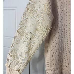 Unbranded Cream Pointelle & Crochet Knit Pullover Sweater Cottagecore Boho S