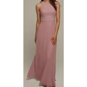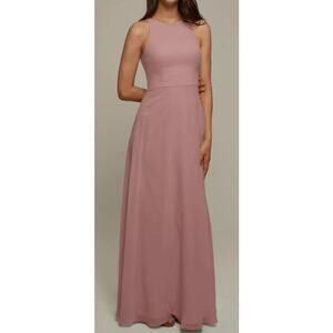 AW BRIDAL 8 M Dusty Rose pink chiffon Alberta formal party maxi dress NEW B102