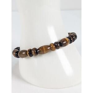Tiger's Eye Beaded Bracelet Healing Chakra Protection Men Women Flexible