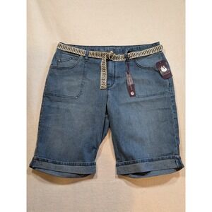 Gloria Vanderbilt MA Belted Bermuda Shorts Medium Wash Denim Women's Size 16