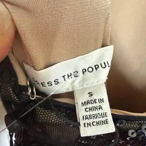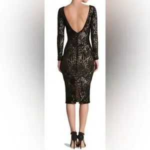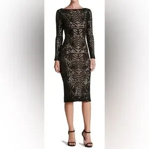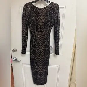 Dress the Population Emery Black Sequin Long Sleeve Dress sz S nwt