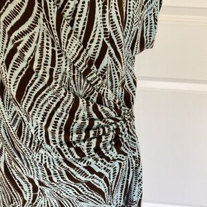 Tommy Bahama Brown and Blue Sheath Dress with V-Neck. Ruched at side. Size L.