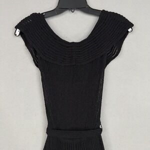 Viola Dress Womens Small Black Knit Fit Flare Belted Lined Cocktail Party