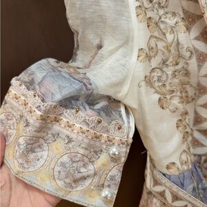 Pearl details on sleeves, intricate buttons, gorgeous detailed belt with crystals. Do not have extra button it came with!