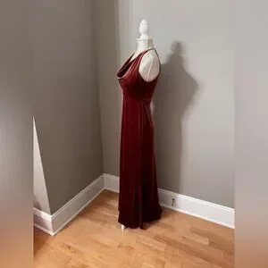 The Jenny Yoo English Dusty Rose Sullivan Dress in Size 0 is a luxurious and elegant long dress made from stretch velvet material. The dress features a cowl neck and sleeveless design, perfect for formal occasions like weddings, parties, or cocktail events. The soft dusty rose pink color adds a touch of sophistication, while the A-line style flatters the figure. The hook and eye closure ensures a secure fit, making it a versatile piece for any season. With its solid pattern and high-quality fabric, this dress is sure to make a statement and turn heads wherever you go.