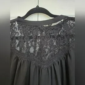 Torrid Georgette With Lace Detail Flutter Sleeve Black Top - Size 2