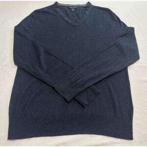 Banana Republic Luxury Blend V-Neck Silk Cashmere Sweater Blue Mens Size Large