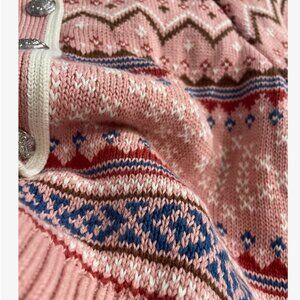 Veronica Beard Cheshire Intarsia Cardigan Rose Fair Isle Pink Knit Holiday