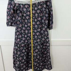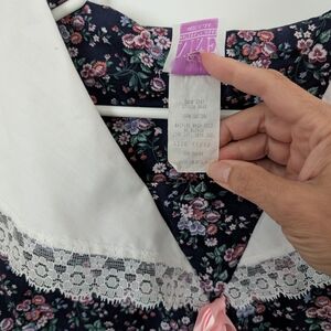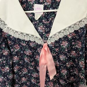 Vtg Navy With Pink + White Flower 3/4 Length Sleeve Maternity, Lace Collar, USA