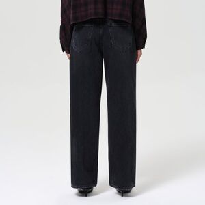AGOLDE jeans, low slung baggy, washed black denim, women’s size 31 jeans, minimalist denim, quiet luxury casual, model off duty, capsule wardrobe denim, relaxed fit jeans