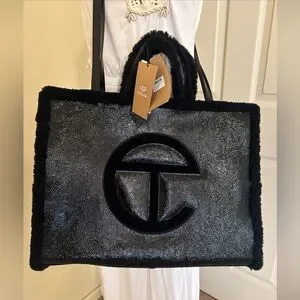 NWT Telfar & UGG Real Sheep Fur Black Large Shearling Shopping Bag