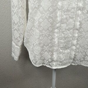 NYDJ White Boho Embroidered V-Neck Long Sleeve Top Size XS