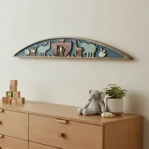 This piece is in very nice condition with minimal scratches and wear consistent with age and use. Please review all photos as they are part of the description. Measures 35” long x 5.5” high at the arch x .75” deep and it comes ready to hang, with the attached hook on the back. Whether it serves as a sweet door topper in a child’s nursery, a focal point in a playroom, or a a unique accent in your living room, this art piece compliments any decor style with charm and cozy ambiance.