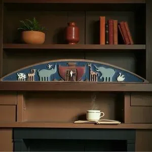 Hand Carved Wood Noah’s Ark Wall Hanging, Door Topper, By Chicken Creek Folk Art