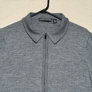 Saks Fifth Avenue Men’s Large Gray Merino Wool Blend Full Zip Knit Polo Sweater
